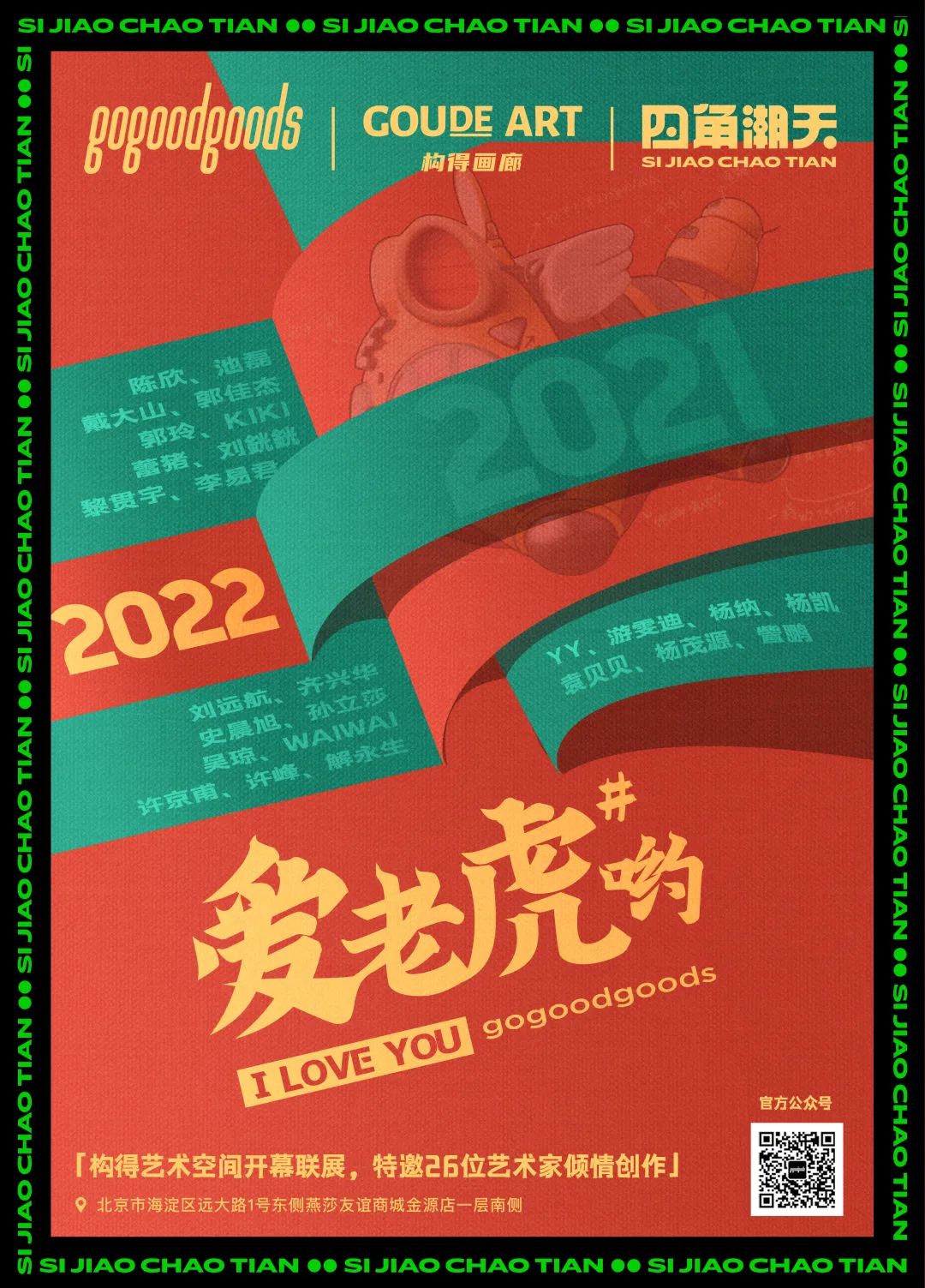 「爱老虎呦」虎年主题展,是由构得艺术携手2021年度最受欢迎的26位绘画艺术家首次集结,在四脚潮天新艺术空间开幕之际集体亮相。