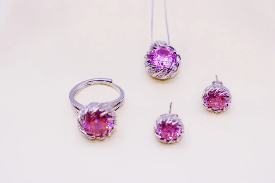 花朵造型与粉色莫桑石的相遇,比想象中更撩人,看似不经意,却藏匿着粉嫩的少女心。