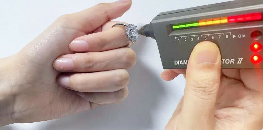 注:用测钻笔接触钻石,真钻石会亮起至少九个指示灯,并发出蜂鸣声,否则就是假钻石