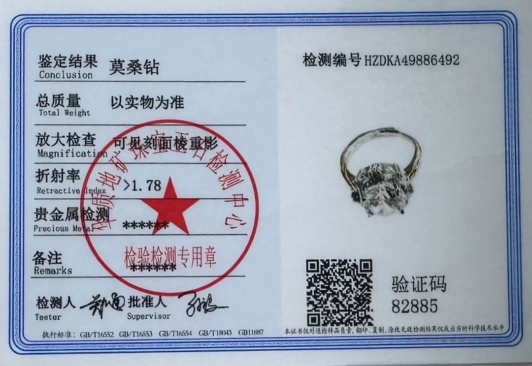 莫桑钻无论从内部结构、外观、数值上都与钻石有超高的相似度