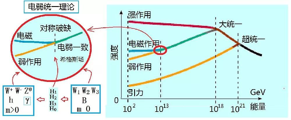 目前,标准模型的规范场论已经把电磁作用、强相互作用、弱相互作用三大基本作用力统一起来。