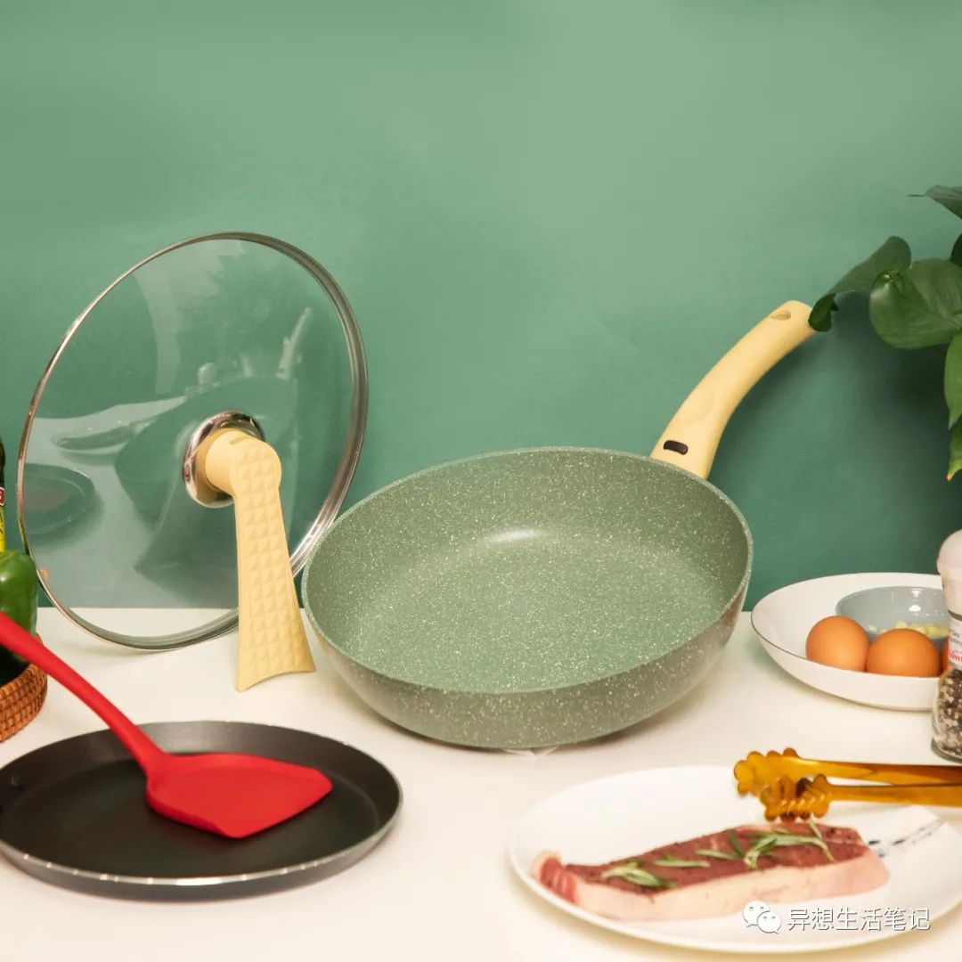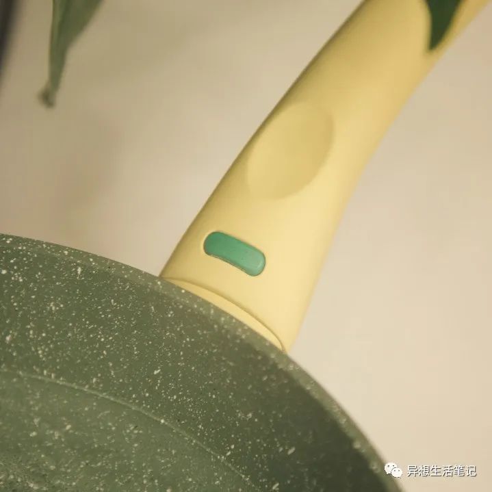 它还有几个贴心的小设计,很适合厨房小白进阶用。新手都知道,做饭最难控制的就是火候,而小绿锅的把手上有温度感应,油温达到140℃左右时会变成绿色,说明火力过猛,这会可以调小火防糊锅!还有小伙伴说用过不少锅,就它不会溅油花,做完一顿饭身上也不怎么残留油烟。