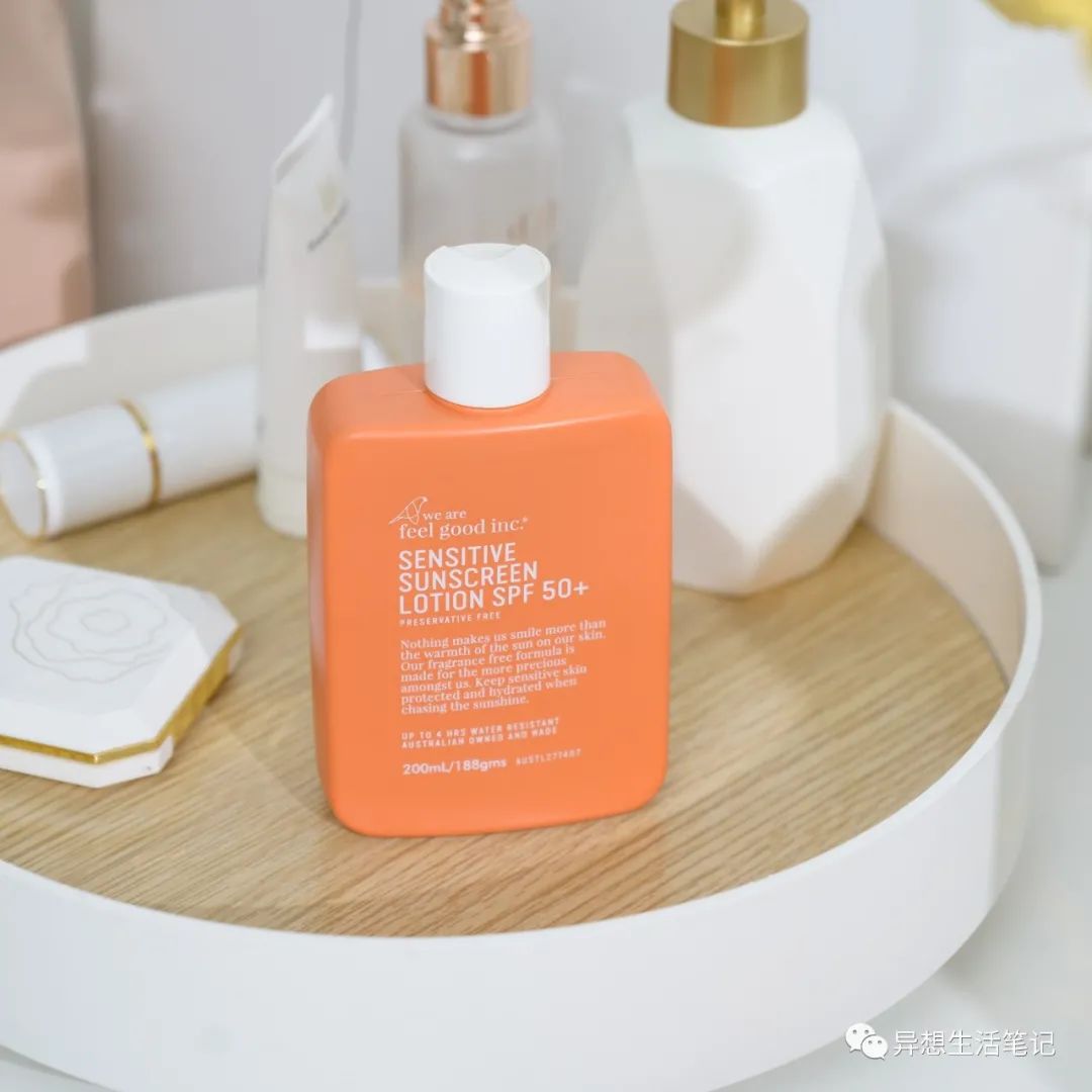 换季防晒我不爱太厚重的,we are feel good大橙瓶就刚刚好,里面添加了维E、芦荟和甘油,保湿力够强足以代替夏天的乳霜,整体质地又偏轻薄,1秒就能成膜,用在脸上既不觉得油腻,也不会闷痘,敏感肌用着也安心。