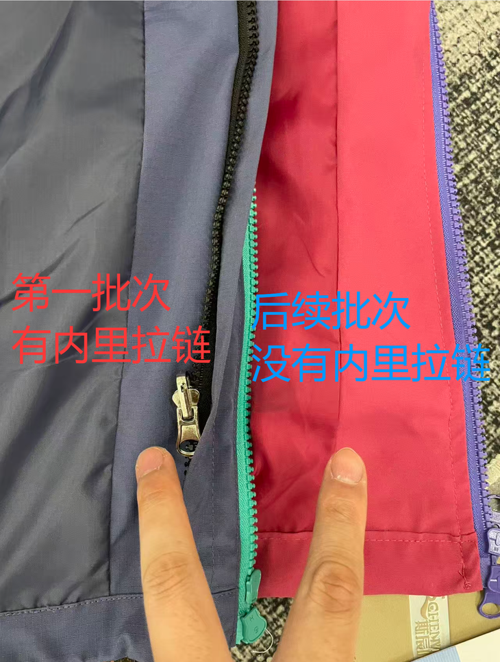 关于内里拉链问题:第一批次内里有拉链,后面批次的内里没有加拉链