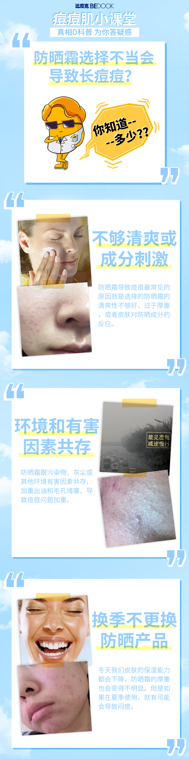 防晒霜会导致痘痘吗⁉️痘肌在防晒霜🔅选择或者使用不当的时候的确有可能会导致痘痘问题加重哦~🤔