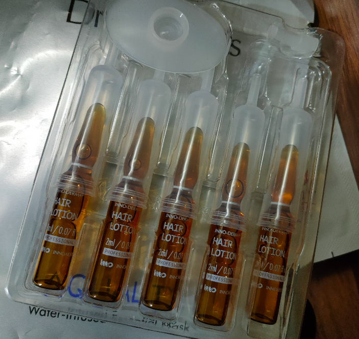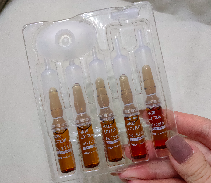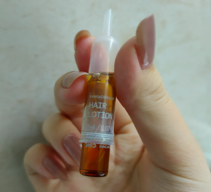 它是一大盒装的,里面是一个个的小安瓶,差不多一次用上个半支就够,他们还很贴心的配上了一个挤压头,能直接把精华对准头皮挤上去,小底座能够让它稳稳站住不容易倒,要不然安瓶太难收了。