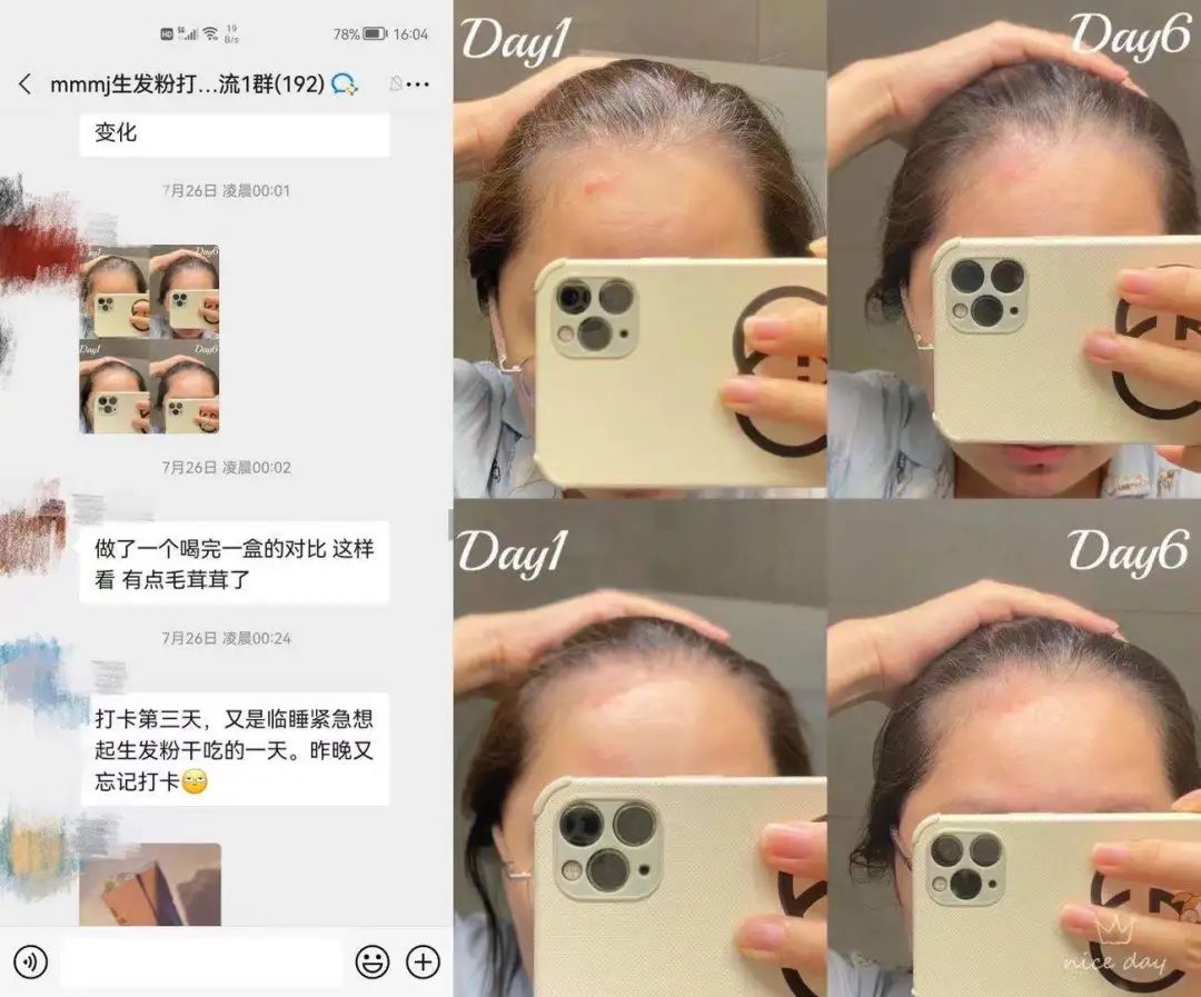 我当时拿了就吃了,巴不得能把头顶的头发变好点,打卡了一段时间后变得好了很多,秃的那块明显长出小毛毛了。