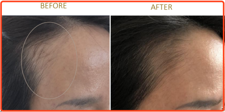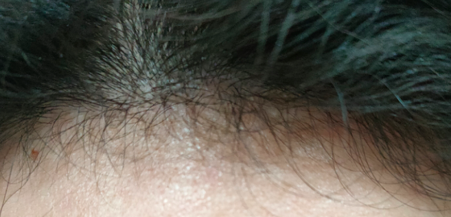 刚开始第一天,发际线还是很高的,连着喝了6天后,明显能看出小绒毛了。