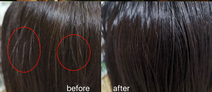 后来我才意识到,这玩意儿不是变发质了,是我发质变差缺少营养,再加上脱发,所以看起来才服帖了。