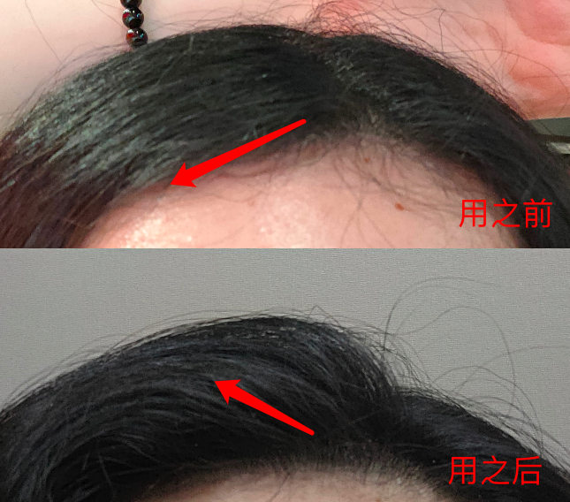 刚开始还没什么碎发绒毛,结果吃到第七天就能看出来发际线明显变平整浓密了,原本向上的鬓角也下移了👇
