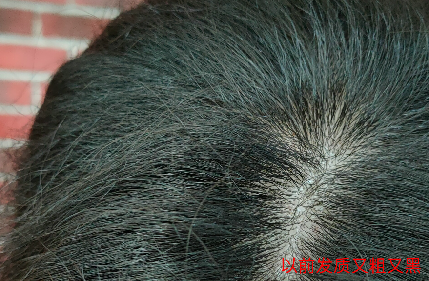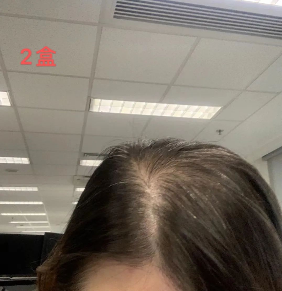 后来连续吃了两盒,发缝密了一点,发根看起来非常健康,而且更黑了,效果令人惊喜👇