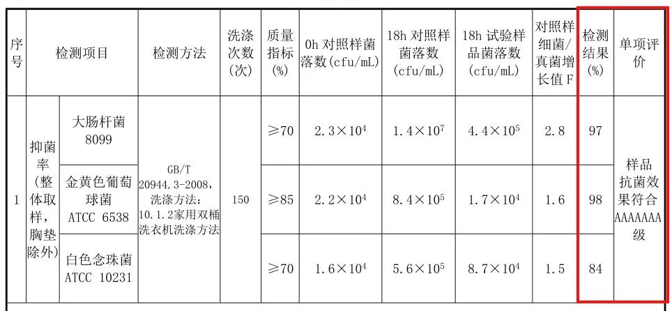 面料自带7A级抑菌效果,抑菌率>84%,可抑制金黄色葡萄球菌、大肠杆菌、白色念珠菌。