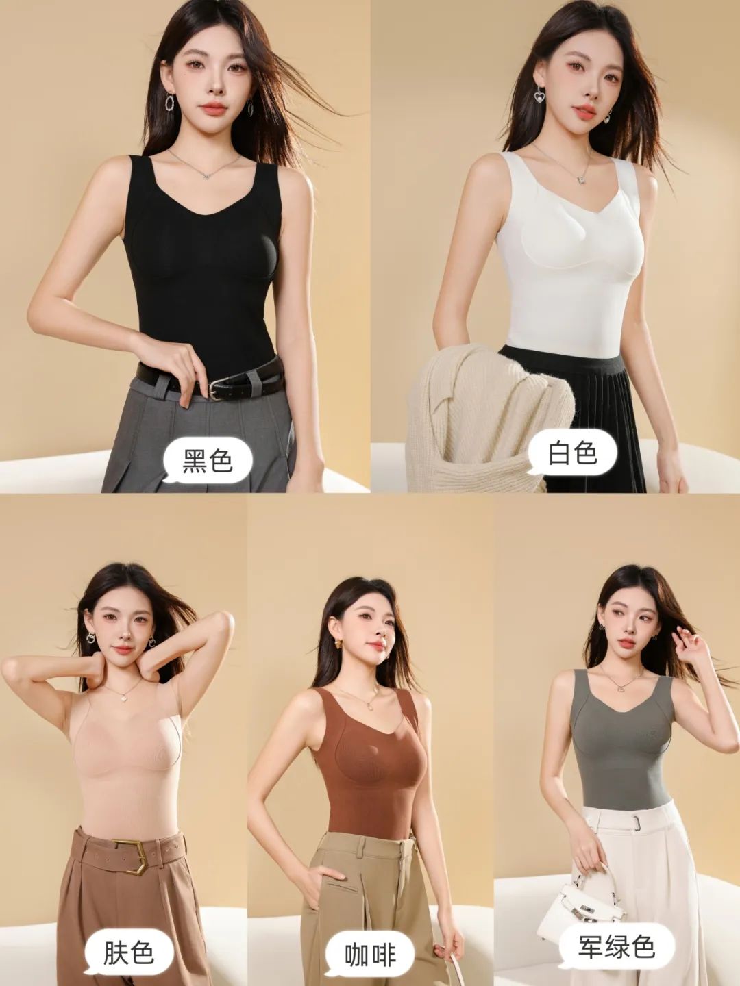 一共做了5个经典的颜色,黑色、肤色、白色、咖啡色、灰绿色,怎么穿都显白,不挑人。