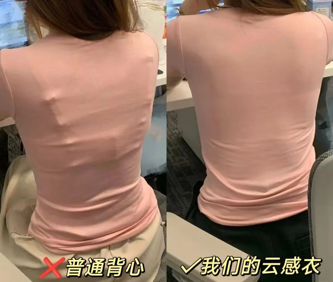 冬天厚衣服套内衣,很多人都会分层、空杯、漏沟。云感衣自带bra,隐形无痕,真的又贴身又得体!