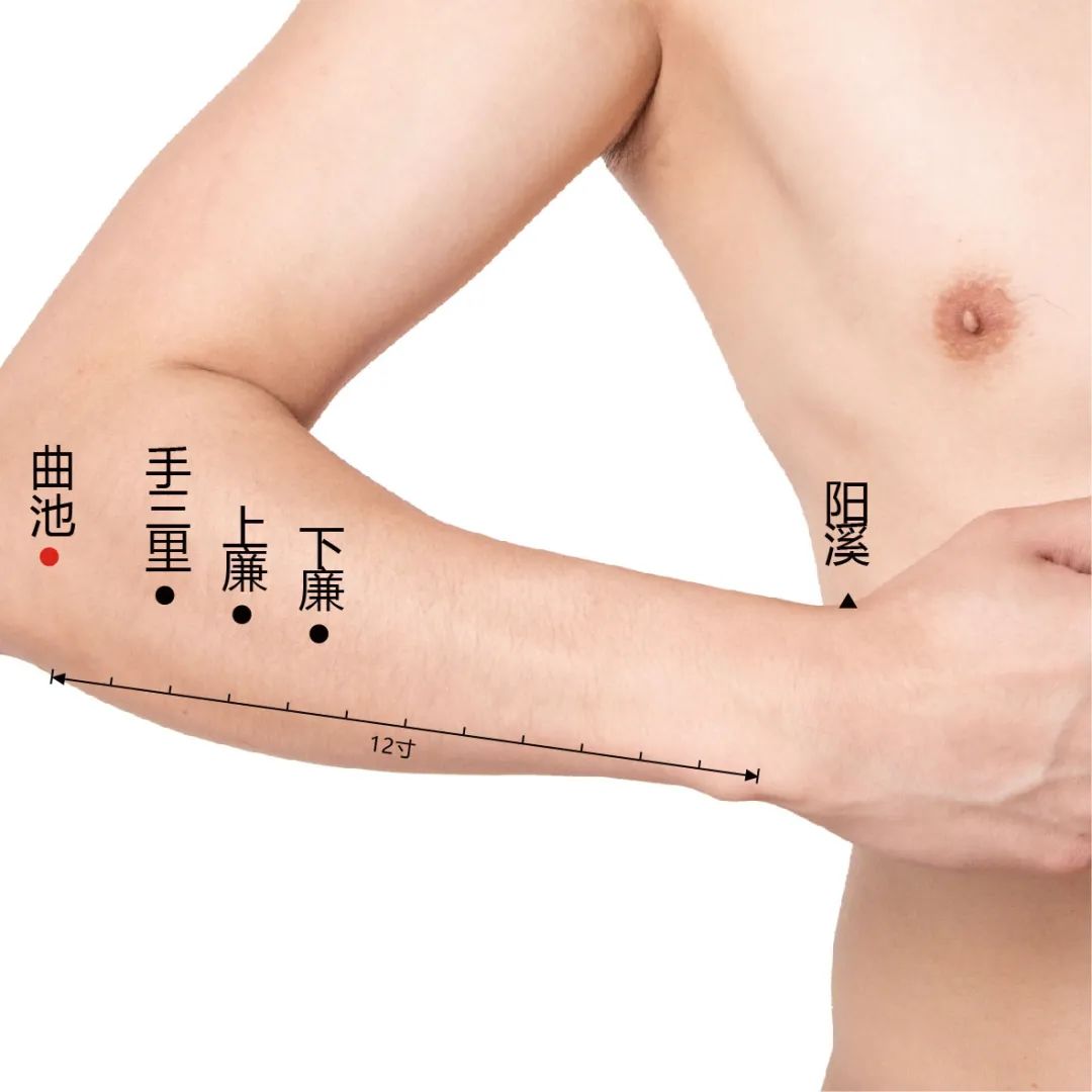曲池穴属于手阳明大肠经,位于肘部,乃经气运行之大关,能通上达下,通里达表,既可清在外之风热,又能泻在内之火邪,是表里双清之要穴,具有疏散风热、解表散邪之功,善解全身风热表邪。