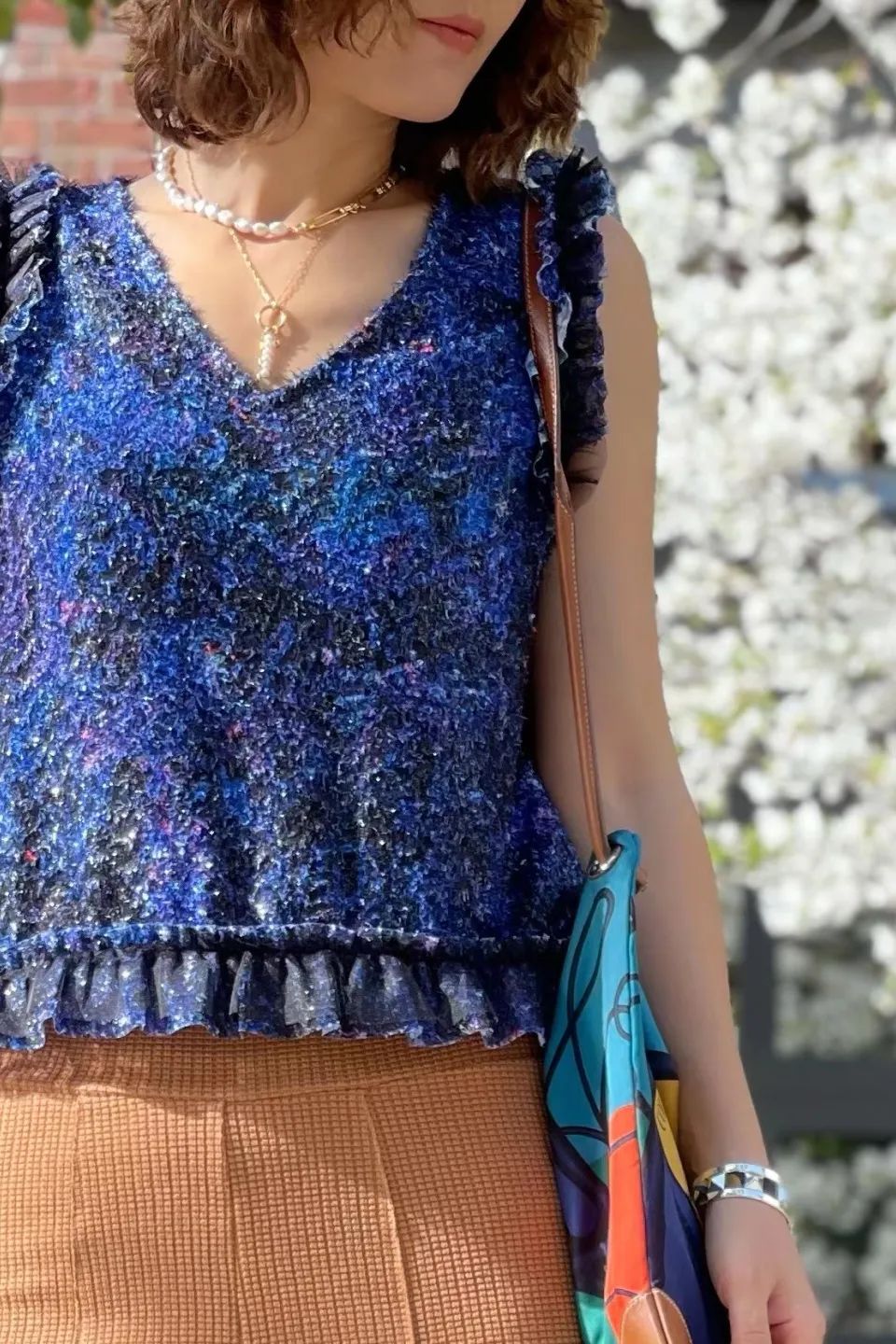 闪烁的蓝色彩花背心
