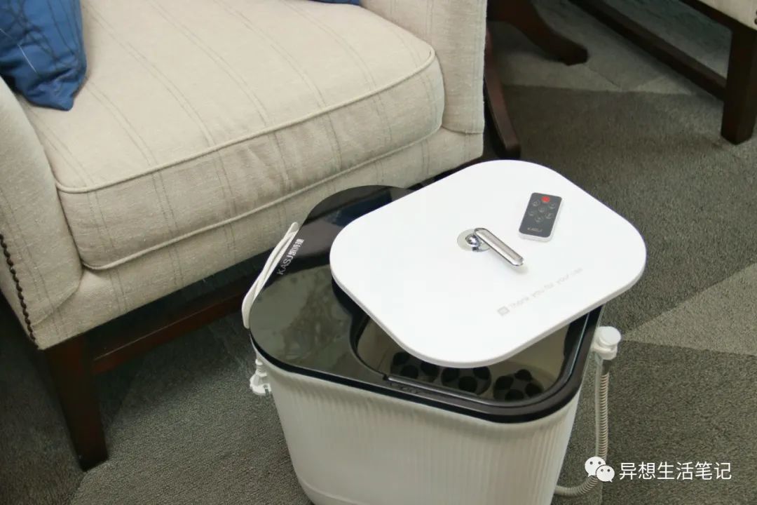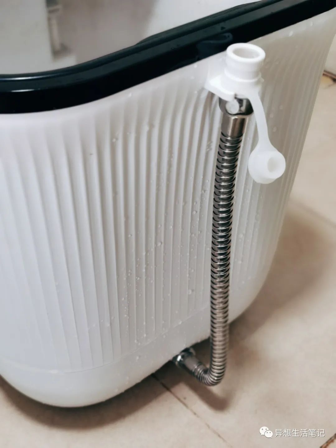 水排好以后再把排水管卡回到卡扣上,整个泡脚桶就可以清清爽爽地收纳好了,也没有什么额外的部件耷拉着,看着就很舒心。