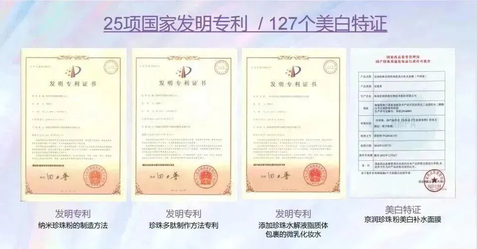 从1994年创办至今——京润珍珠拿到手25项國家发明专利,127个美白特证。