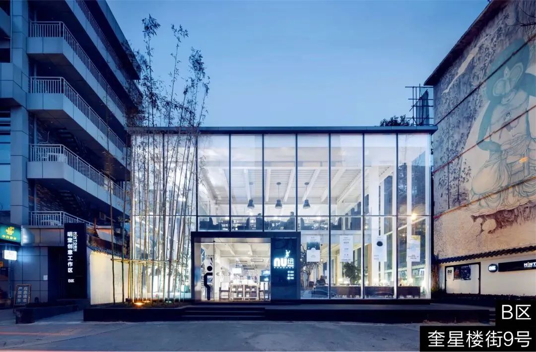 明堂创意工作区&NUSPACE_纽空间诞生于成都最具历史底蕴的老城区“少城”奎星楼街,物业前身是几乎已经废弃的两幢80年代旧楼。经过明堂创意和纽客文化两家文化机构投资改造后,2013年9月1日正式开园运营,现在成为了全国知名的文创产业运营平台。