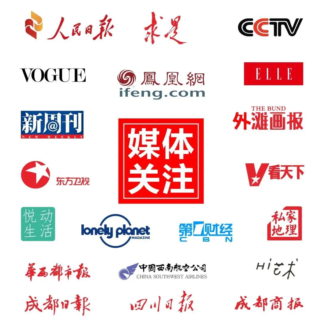 求是、人民日报、人民日报海外版、cctv4、东方卫视、凤凰、新浪、新周刊、第一财经、ELLE、VOGUE、Lonely planet、外滩画报、看天下、悦动生活(高铁专刊)四川日报、华西都市报、成都日报、成都商报及众多网络媒体等。