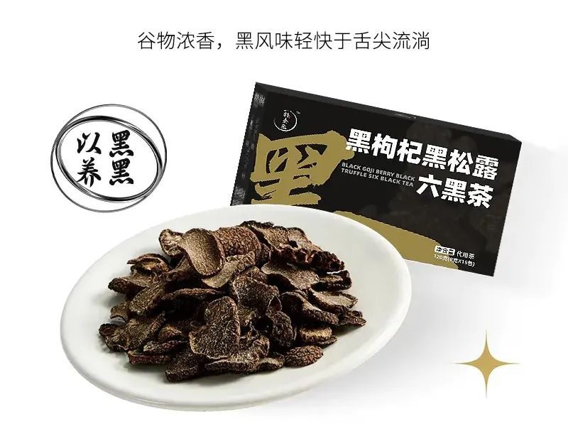 而黑枸杞黑松露六黑茶不惜花大价钱,选用当季采摘的自然生长的黑松露,加大六黑茶的养肾力度,滋养肾气,恢復元气和精气神!