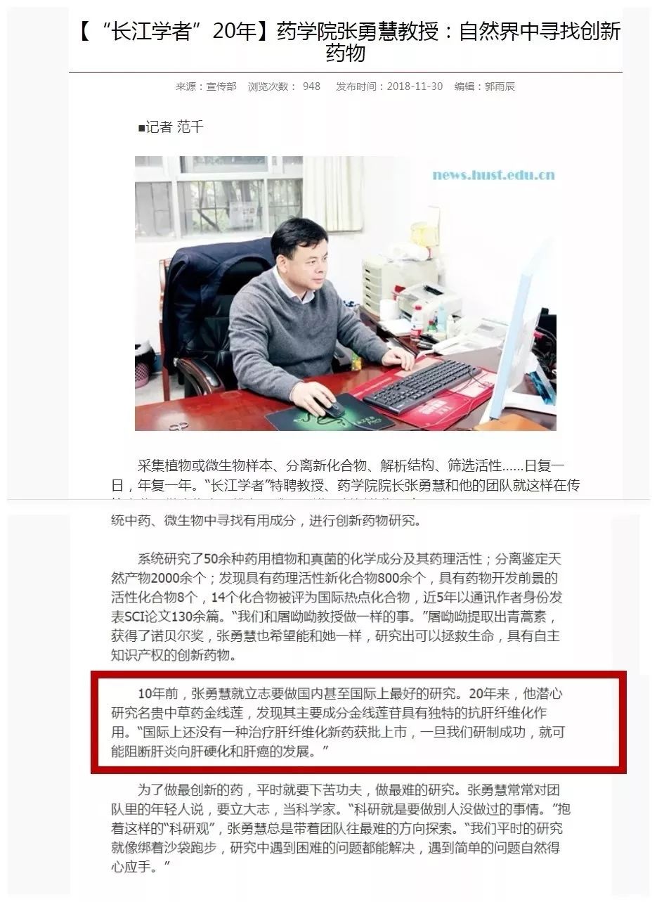 张勇慧先生,华中科技大学同济药学院院长,二级教授,国务院特殊津贴获得者,教育部“长江学者”特聘教授,国家杰出青年基金获得者,国家“万人计划”领军人才,中国药学会理事,中国中药和天然药物专业委员会委员(湖北省主委),人民卫生出版社《天然药物化学》副主编,国家CDE新药审评专家,国家重大新药创制专项“十二五”《糖尿病新药临床前研究》课题组长,他的团队研究金线莲近二十年,认为金线莲苷对免疫性肝炎 、肝纤维化具有独特作用;