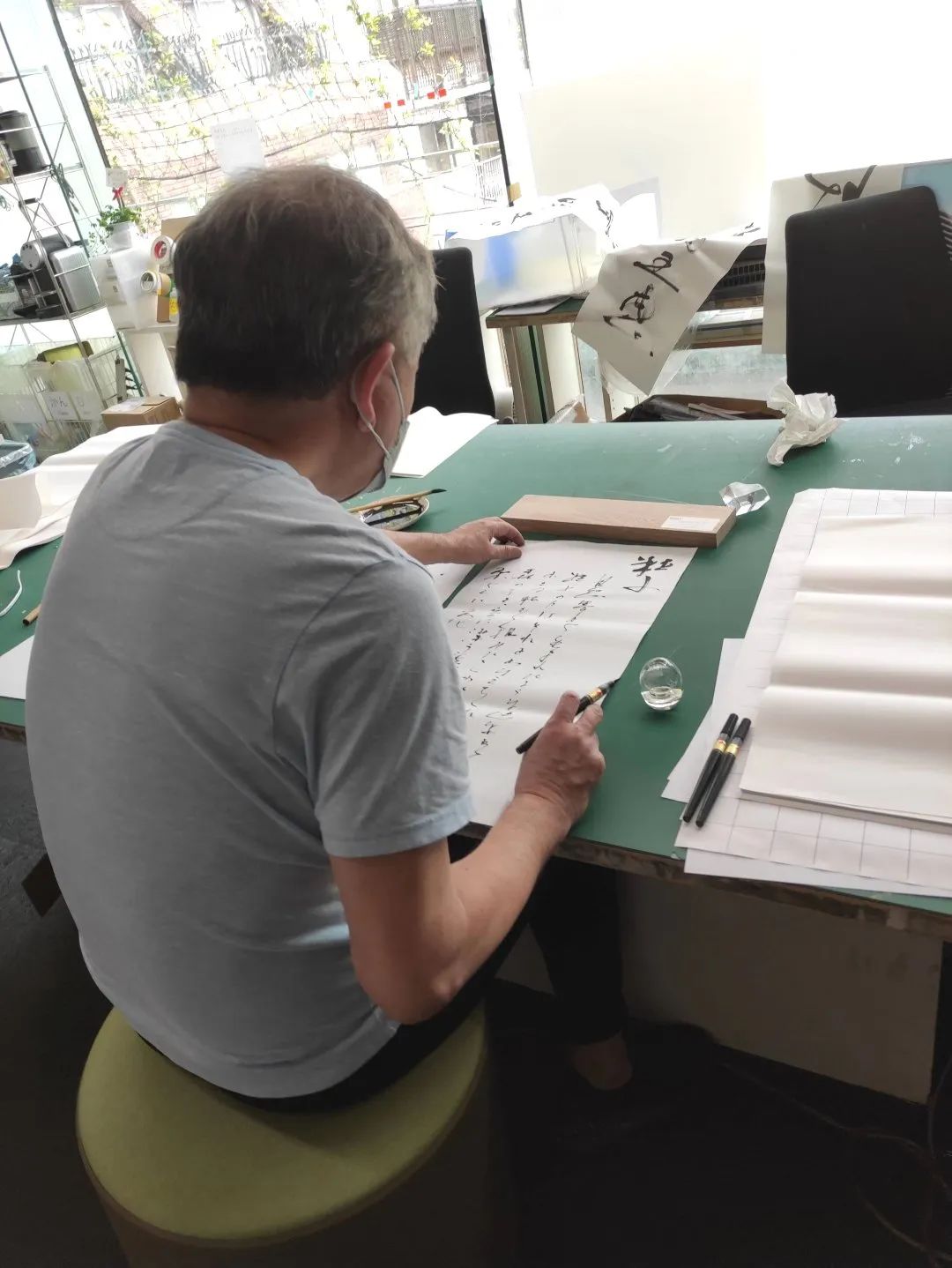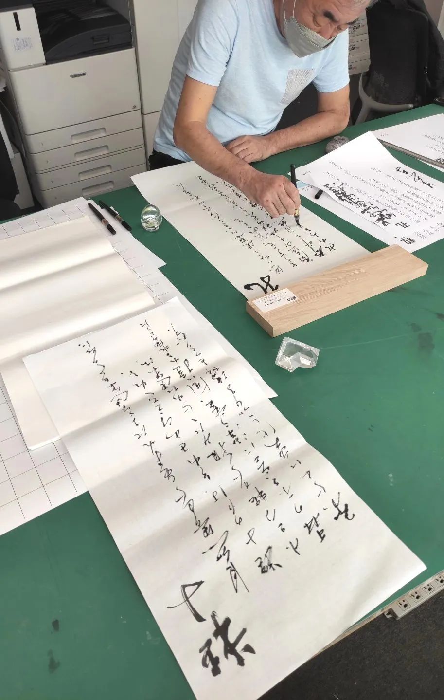为展览创作书法作品的隈研吾先生