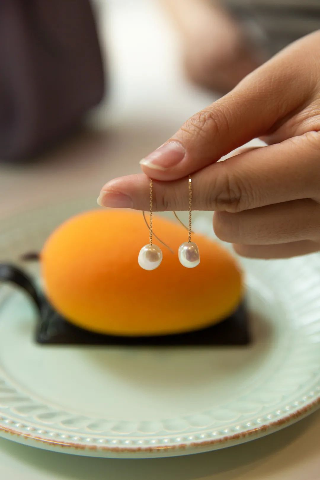 这一款耳环日本的知名品牌tas*ki也做过,选用的也是淡水珍珠。这次给给大家选的珠子我们也会确保珠光最美丽,表皮没有明显的坑洼瑕疵;会用最好的淡水巴洛克的标准来制作。