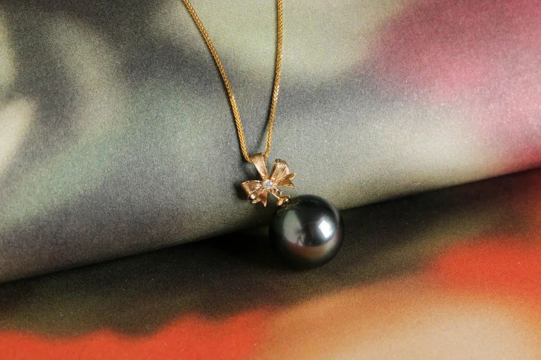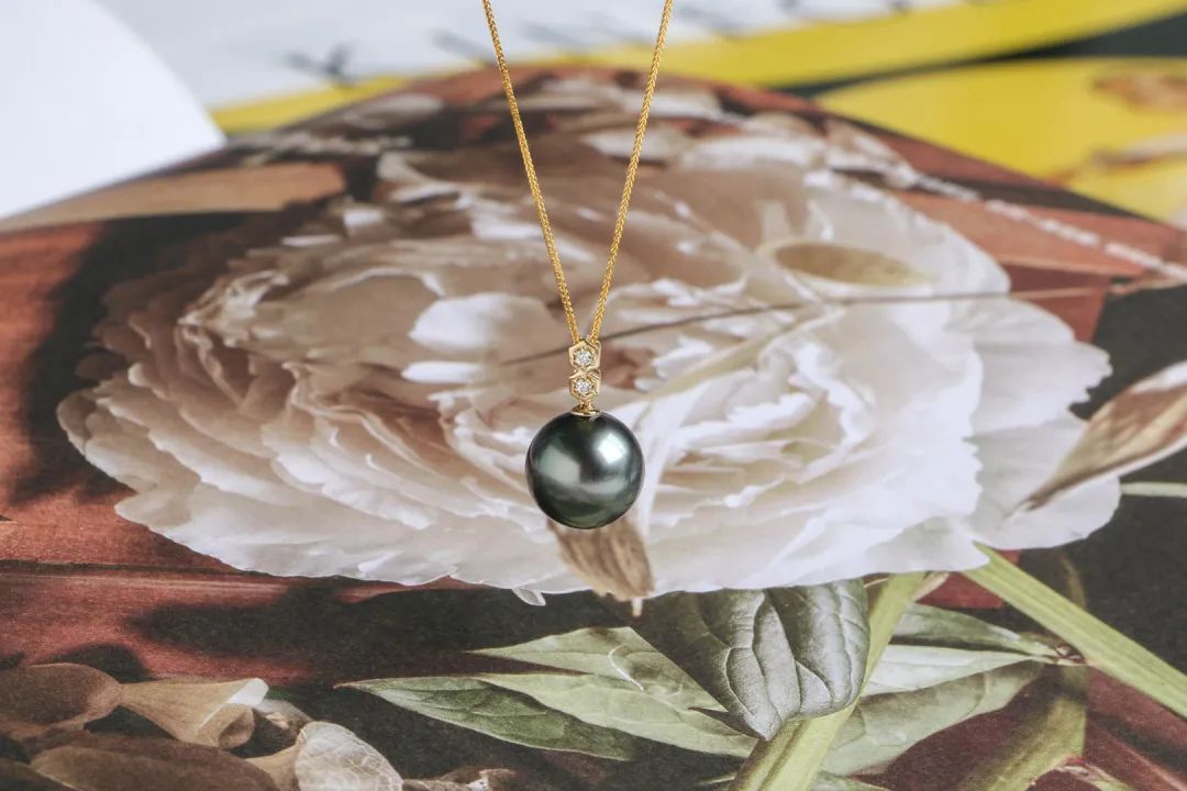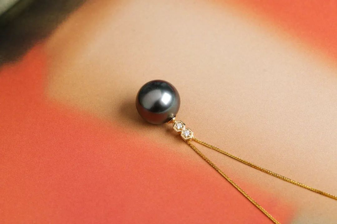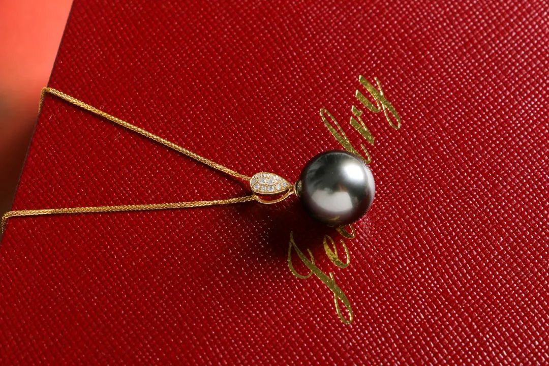 婉吊坠,12-13mm大溪地黑珍珠,微微瑕,正圆强光。自留或者送妈妈都很不错。母亲节特惠。