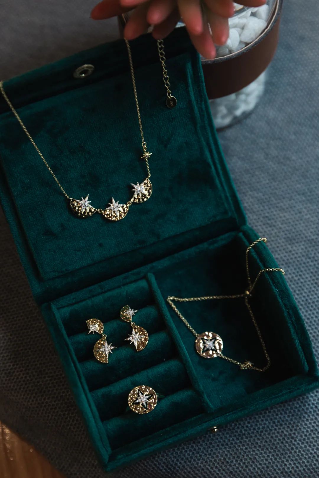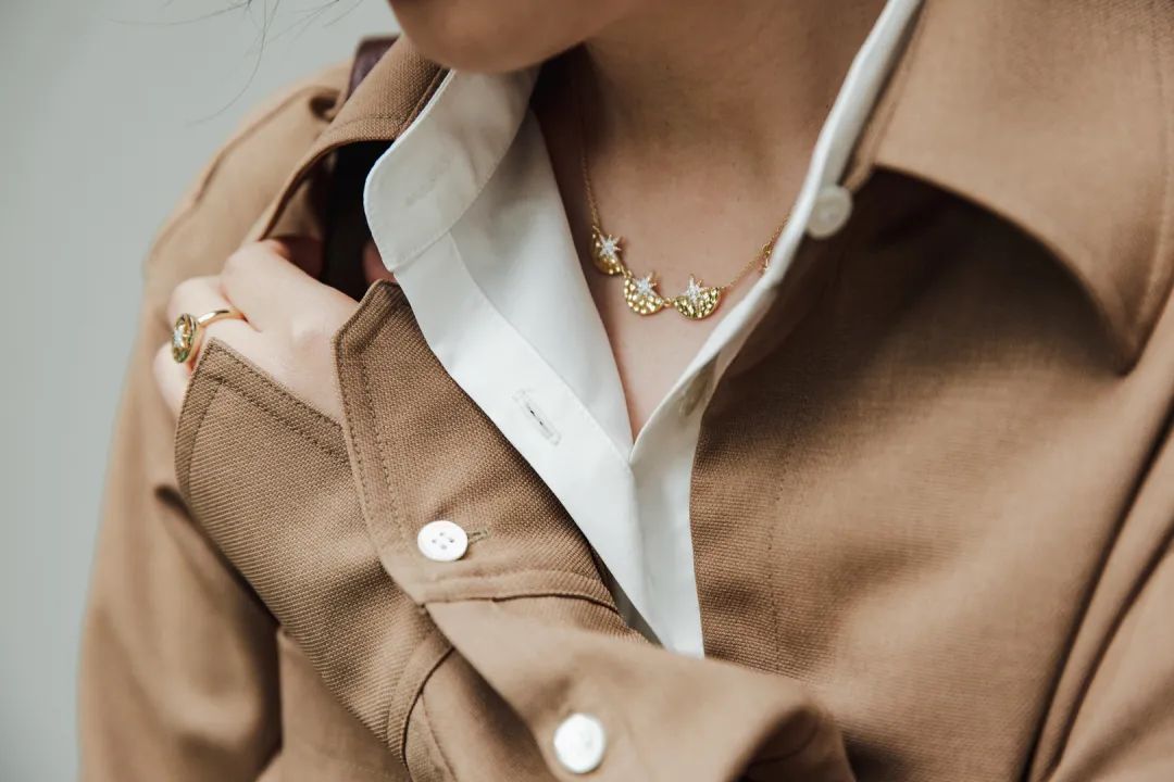 PERPERLE独立设计师品牌轻奢饰品线设计出品,设计师将八芒星切分成灵动的半圆,拥有她的女性,不仅充满可以航行全球的力量,并对万事万物存敬畏之心、好奇心,在独立自恰和融合包容之间自由切换。