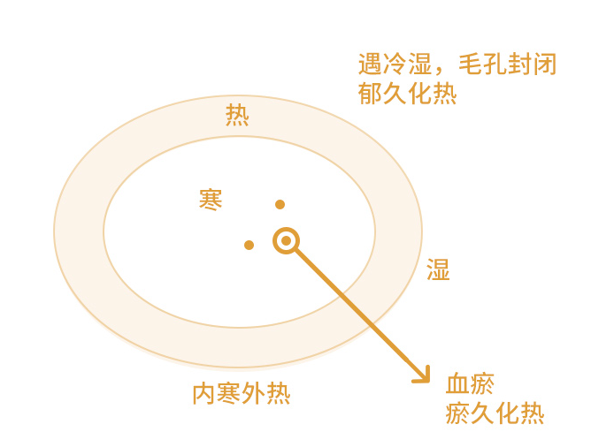 我们的湿热茶不会像凉茶越喝越虚,而是引火下行,针对热里夹湿的“真寒假热”