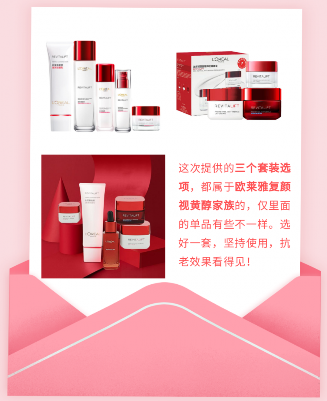 聊完成分,再来具体看看每款套盒(其中欧莱雅复颜五件套有两款)。