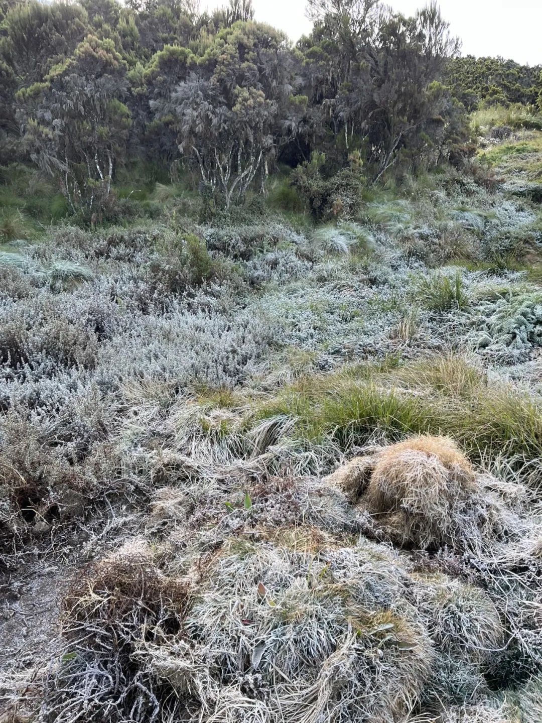 第二天出发时看到路边的草上都结了霜。这可是在赤道上啊!