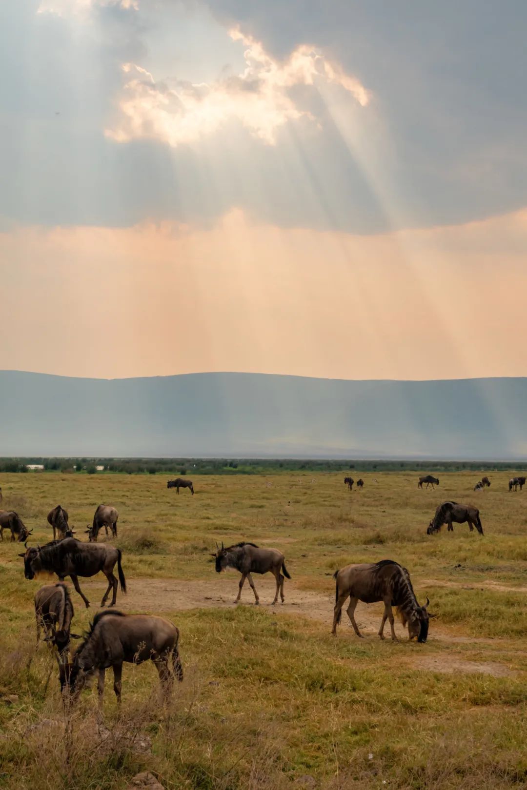 角马,草原,云隙光,符合我对非洲的刻板印象。