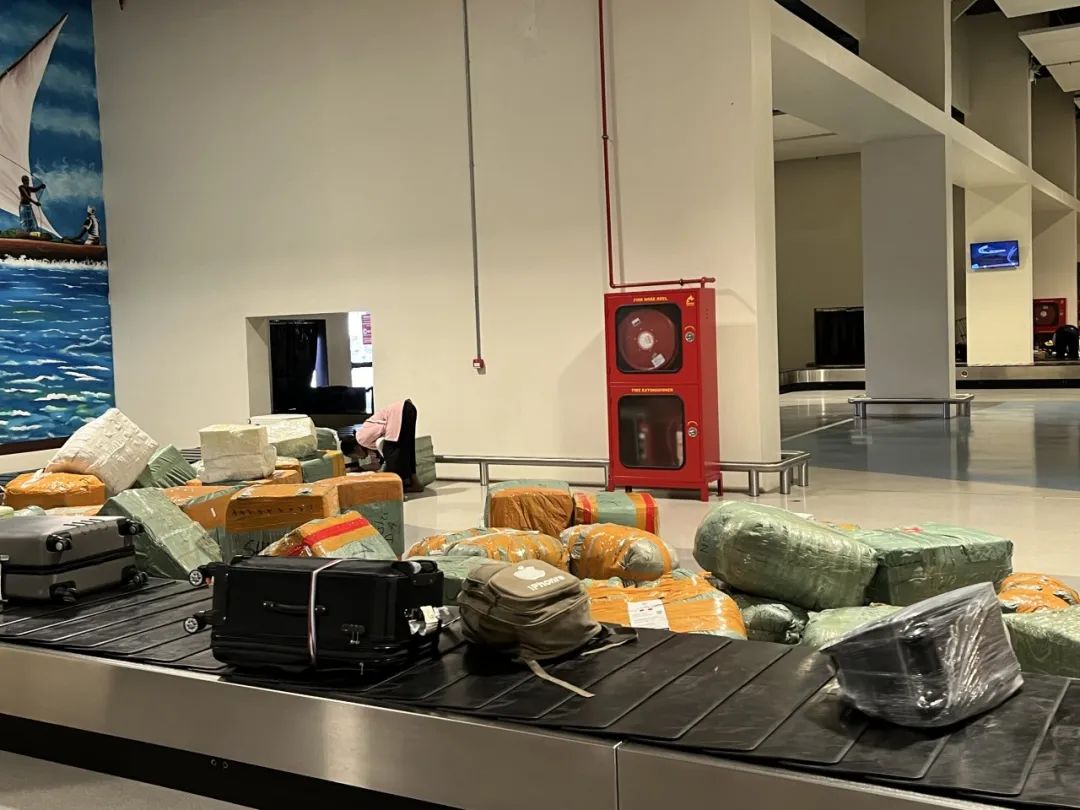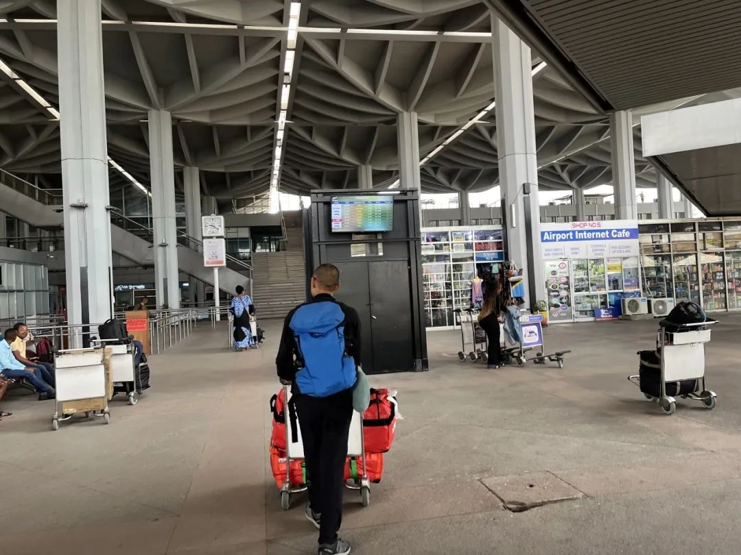 取行李时满地的包裹让人好奇这帮非洲朋友从中国进了一堆什么好东西。
