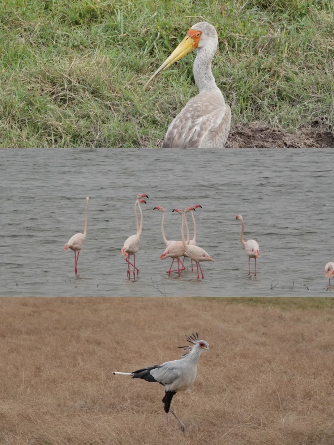向导沿着土路一路飞驰,这一路,有长颈鹿、火烈鸟、水牛、角马、斑马、羚羊、大象、鬣狗······以及很多我听不懂的名字的鸟。