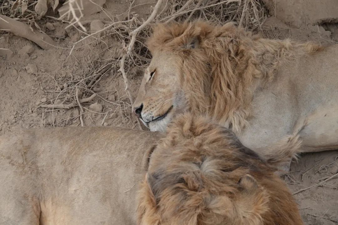 还有这只狮子,肚子圆滚滚的躺在那,一副油腻大狮的模样,我以为非洲大草原的狮子都像动物世界里说的整天饥肠辘辘吃一顿饿三天呢。