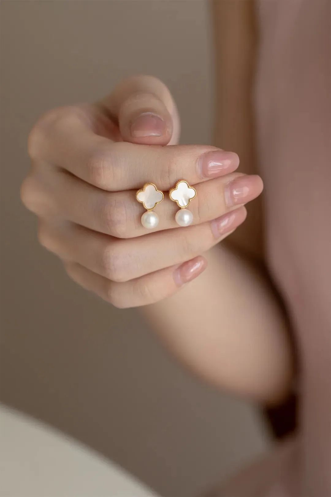天然贝母的四叶草造型,自带贝母的光泽感,搭配淡水珍珠的莹润珠光,优雅温柔,美的毫不费力。