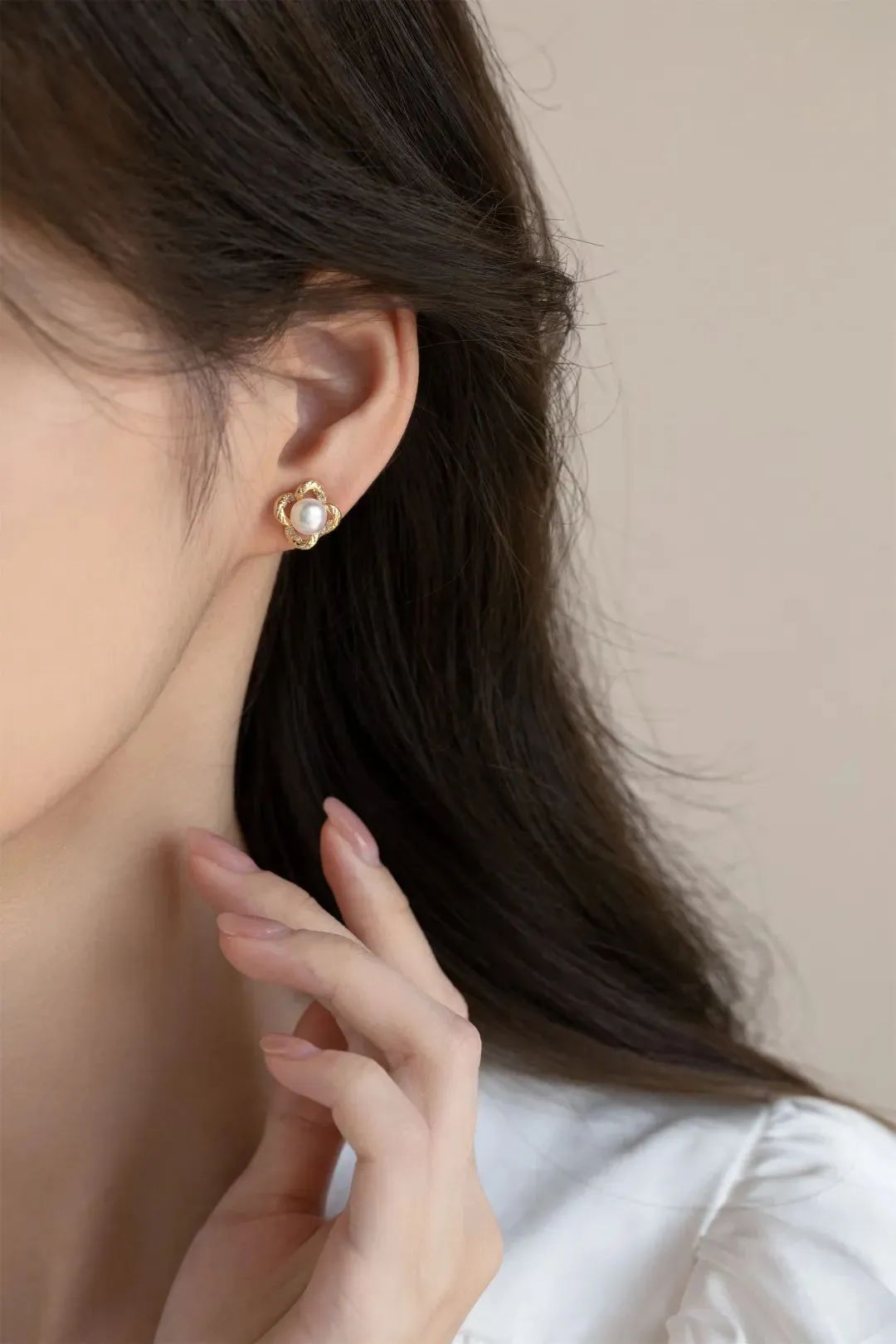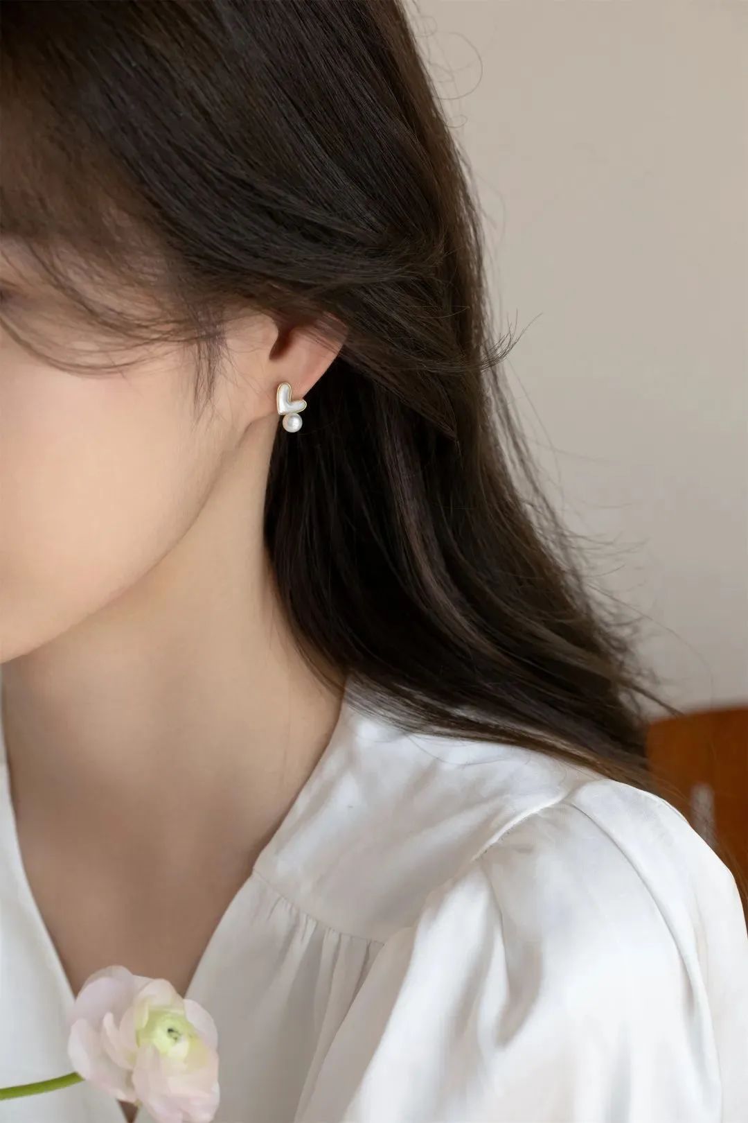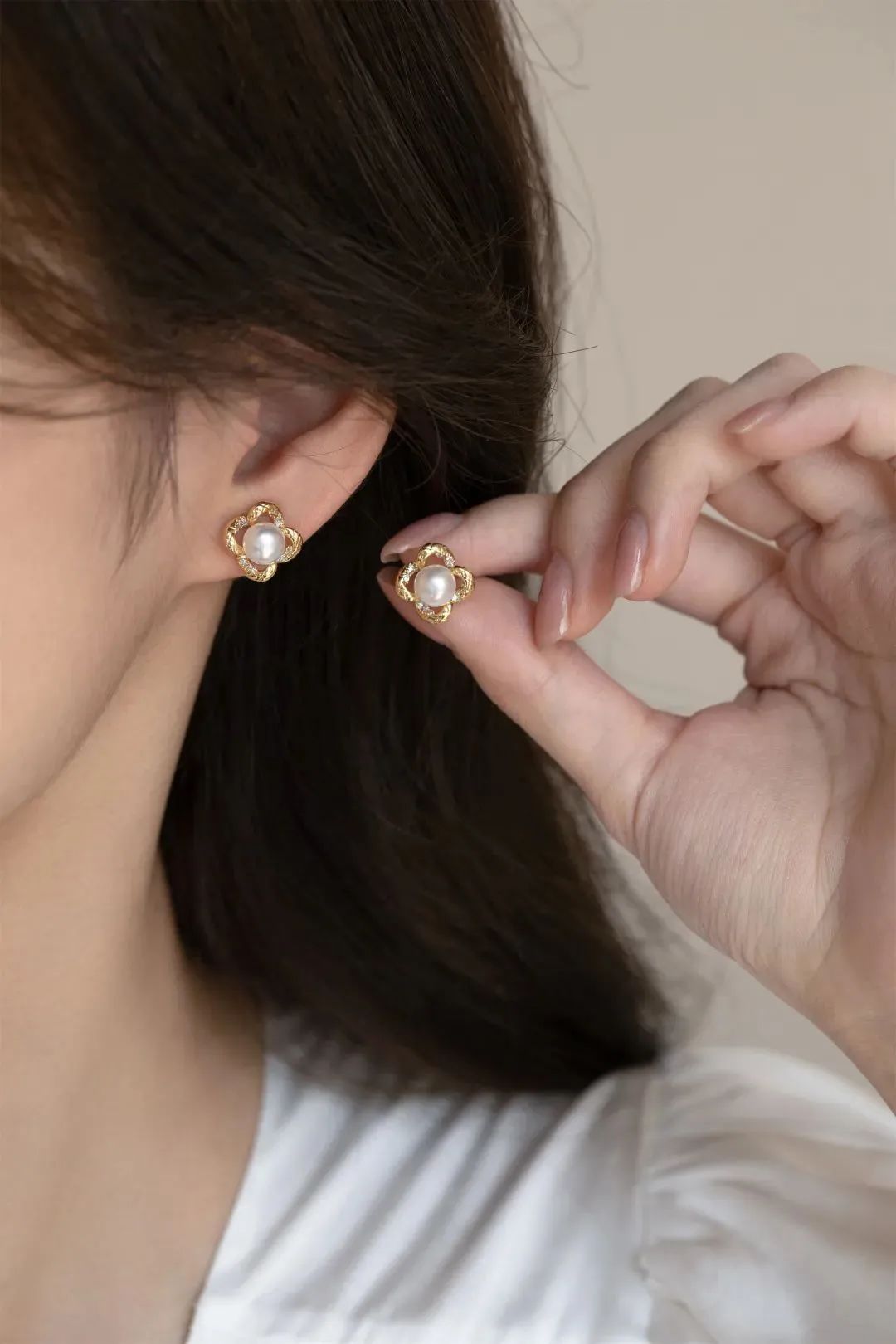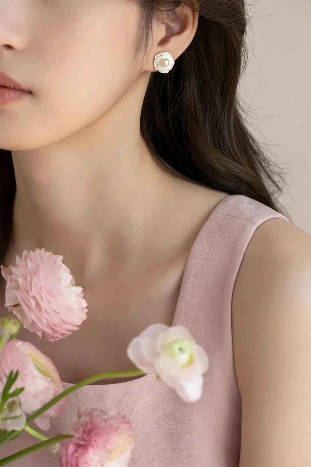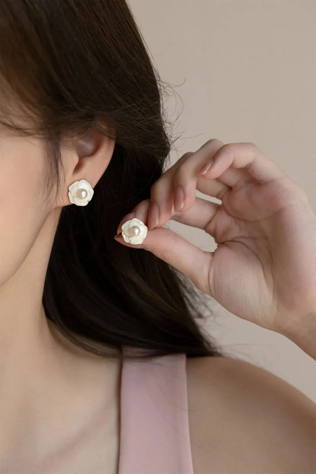 镶嵌天然淡水珍珠,精致动人,犹如盛开在耳边的山茶花,浪漫动人,优雅又清新,非常适合夏天。