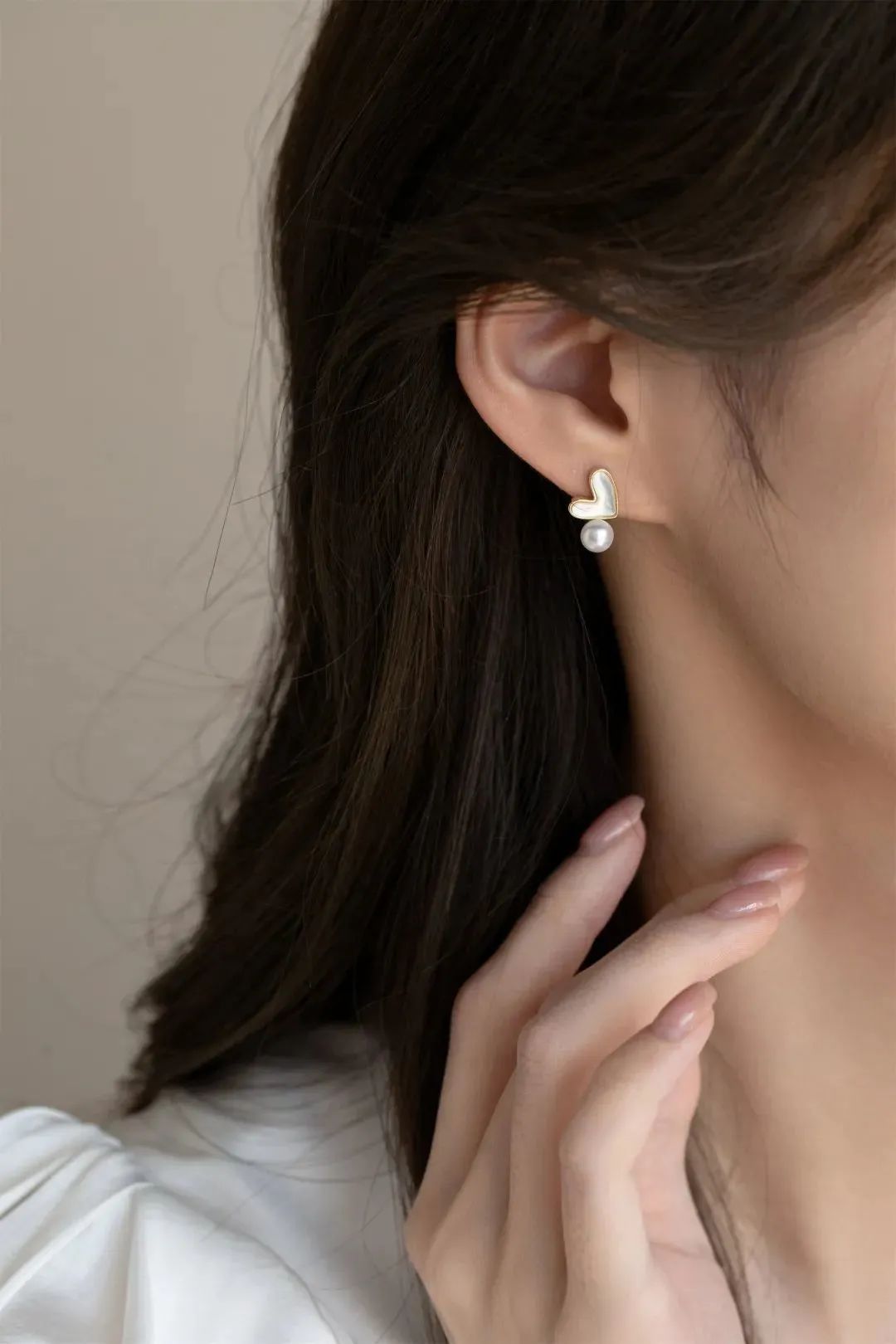 浪漫可人的爱心选用深海白蝶贝贝母镶嵌,14K金包边,光泽自然高级,和镶嵌的天然淡水珍珠相得益彰,优雅精致。