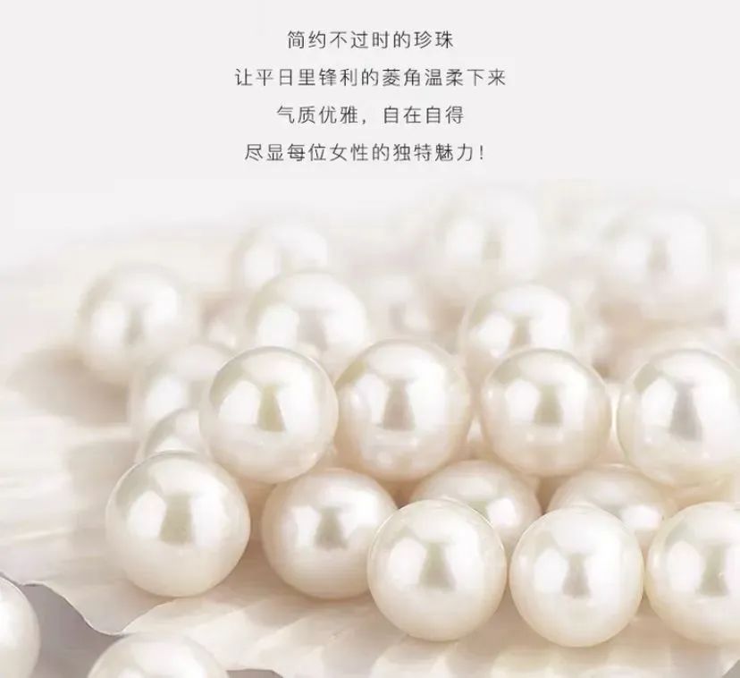 点缀强光6A级近圆天然淡水珍珠,光彩动人,皎白如月光。