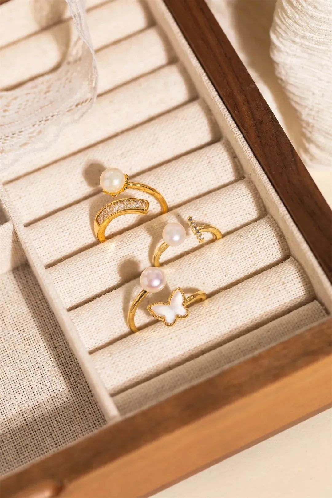 还为大家挑选了三款风格不同又百搭的珍珠戒指搭配。