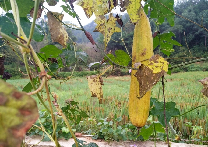 当这些水灵灵的少女们守在藤上,在日晒风吹中一天天成熟老去,直到最后褪尽了娇嫩的果肉、只剩下柔韧的丝络,她还是不遗余力地将自己柔韧的风骨——丝瓜络,奉献出来,操劳时现身,其它时间静默在一个你能找到的角落。