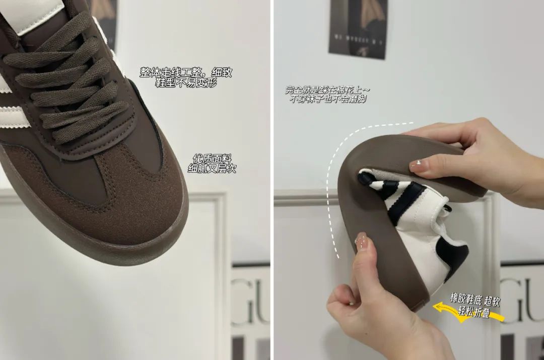 如今,Ma***、 Mar*****、Ad***s等大品牌都对德训鞋致敬复刻,而它也从训练鞋华丽转身,成为时尚博主脚下的新宠。