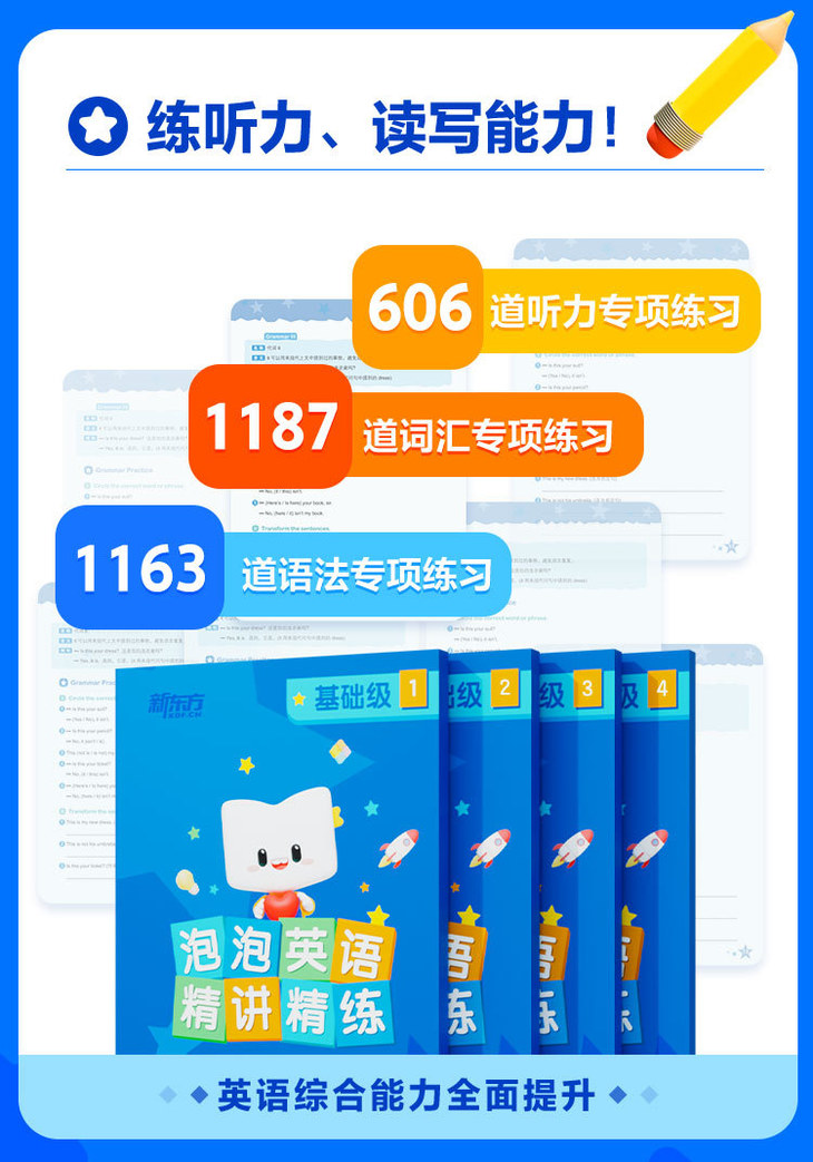 🙌《新东方泡泡英语·精讲精练》是新东方专为中小学生研发的 “新概念经典教材同步练”