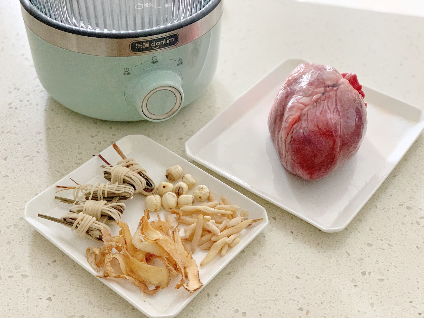 2. 所有药材用洁净水浸泡20分钟,猪心切片冲洗干净血水