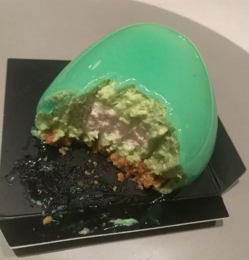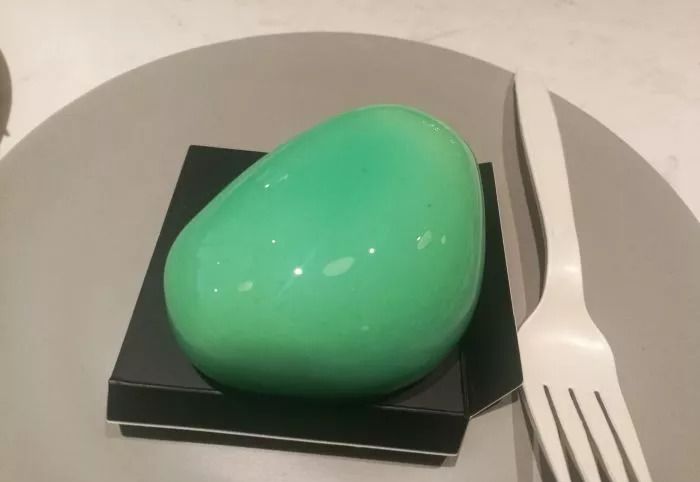 薄荷牛油果味蛋糕,看这绿色鹅卵石的外形,颜值没得说!里面是淡绿色的牛油果慕斯和白色的薄荷慕斯,味道也非常特别。