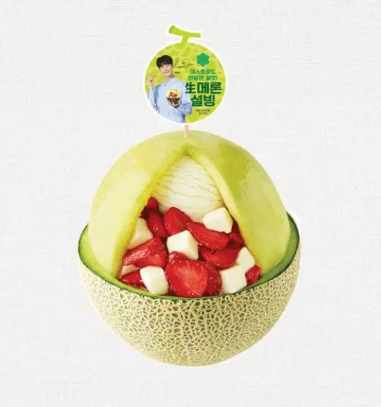还有充满惊喜的哈密瓜草莓芝士雪冰,当你把上面盖着的哈密瓜切开时,露出的是满满的草莓雪冰,重现你见到韩国欧巴那种怦然心动的感觉……