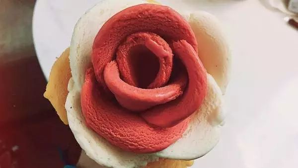 如果要选出颜值最高,长得最“甜”的雪糕,AmoRose 的三色玫瑰花雪糕可能是最实至名归那个。