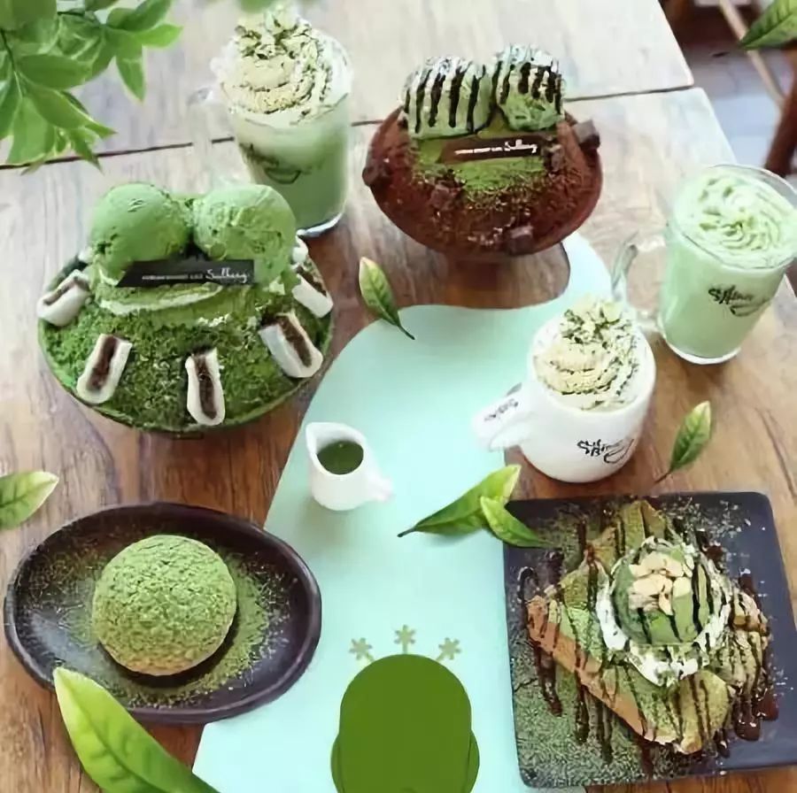 再配上一杯抹茶拿铁的话,你就会沉浸在抹茶的世界里不可自拔了。